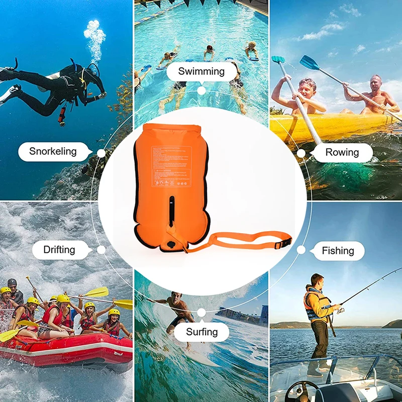 20L 풍선 오픈 수영 부표 견인 부양 가방 더블 에어백 수상 스포츠 생명을 구하는 수영 부표 풀 팽창 공기 건조 가방