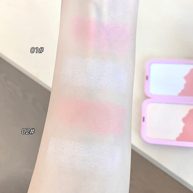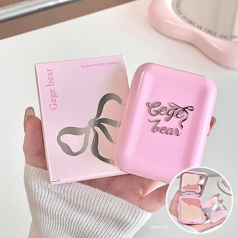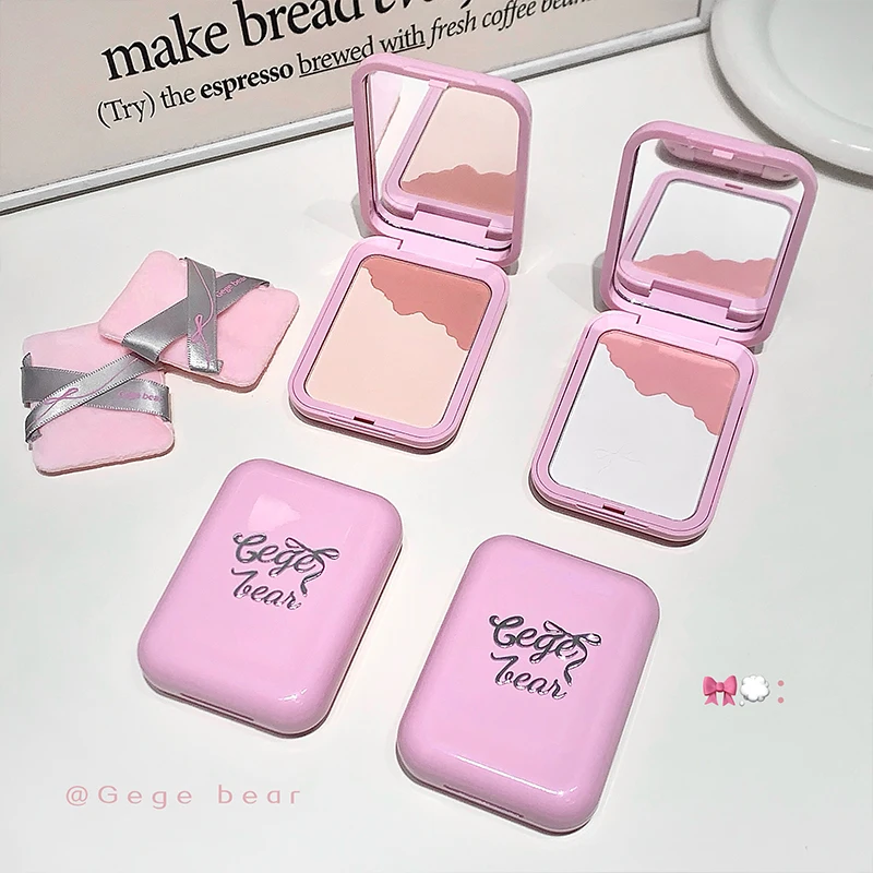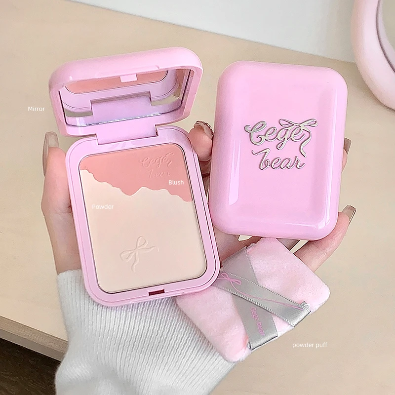 게게 베어 2-in-1 하이라이터 블러쉬 파우더 (파우더 퍼프 포함) 다기능 메이크업, 밝게 하는 자연스러운 매트 메이크업