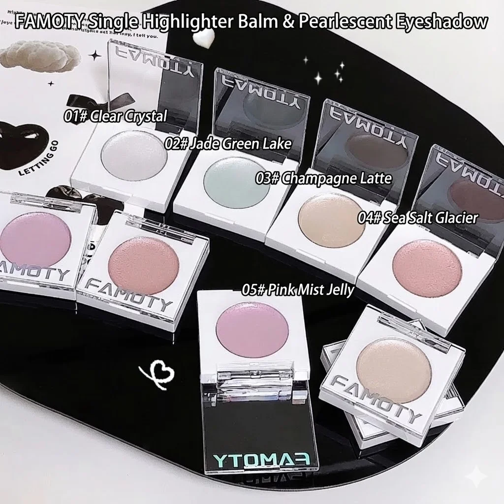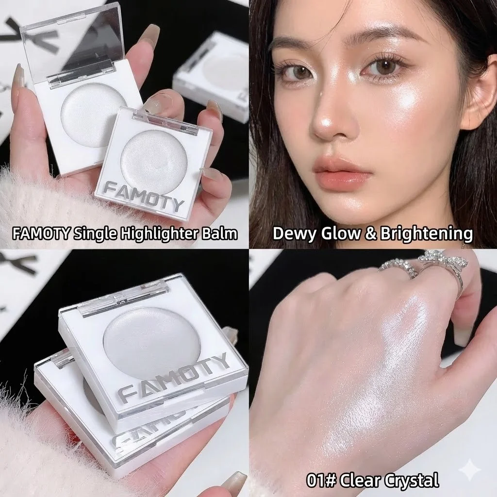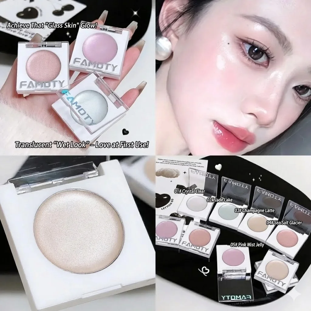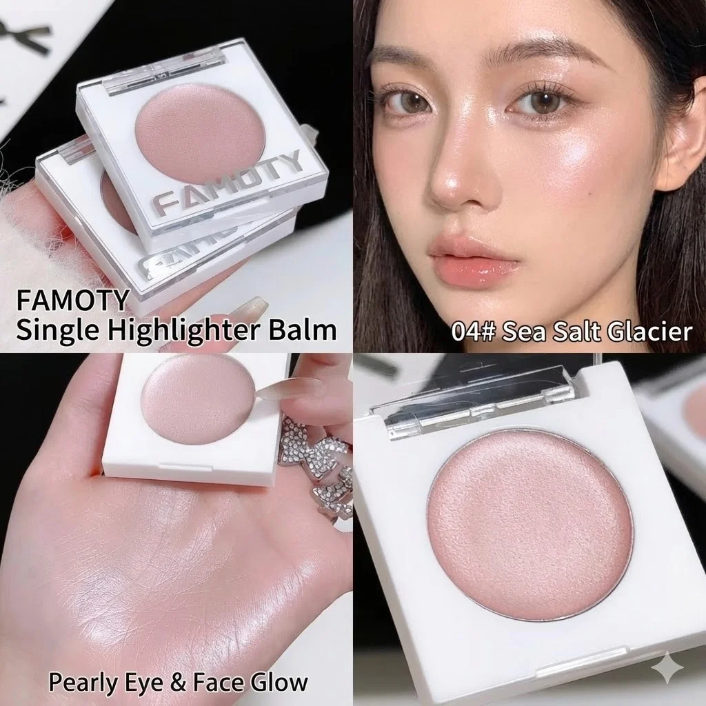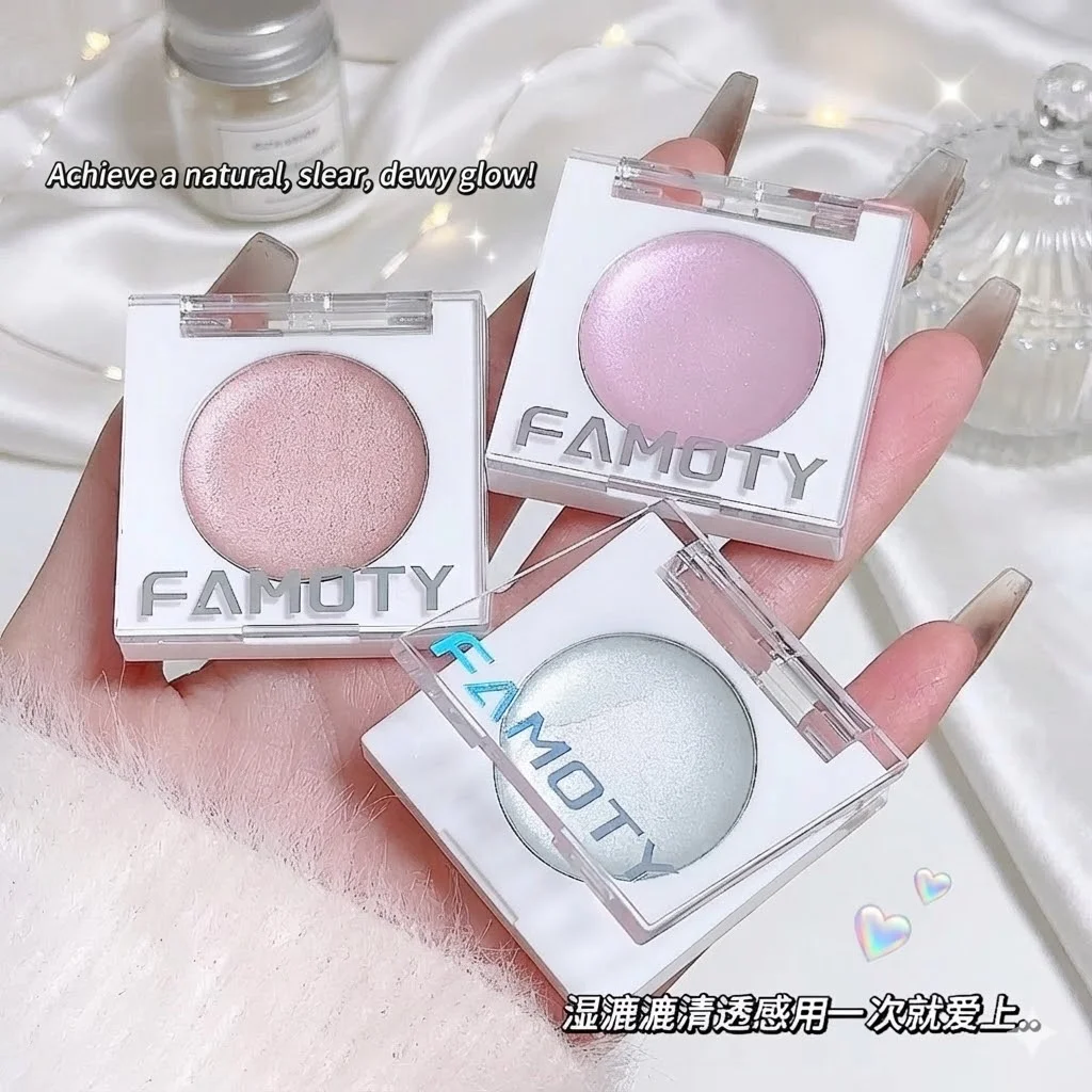 FAMOTY 멀티 유즈 크림 하이라이터 밤 – 펄 광채 글로우 스틱 (얼굴 & 눈가용) 촉촉하고 웨트룩 마감. 화이트/핑크