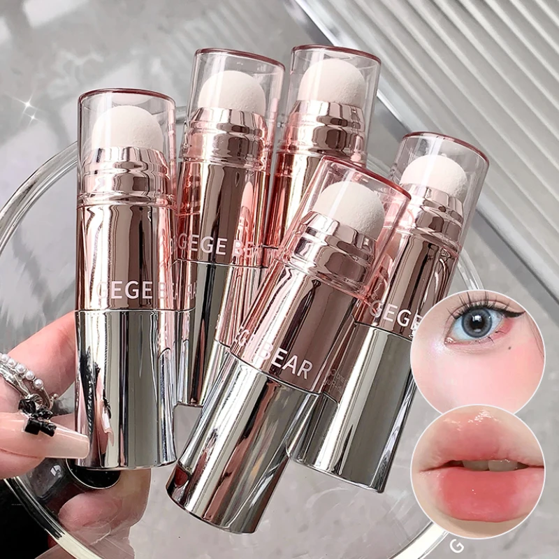 QIBEST 다기능 메이크업 스틱 3 IN 1 립스틱 블러셔 얼굴용 가벼운 립 틴트 내추럴 블러쉬 크림 지속력 있는 화장품